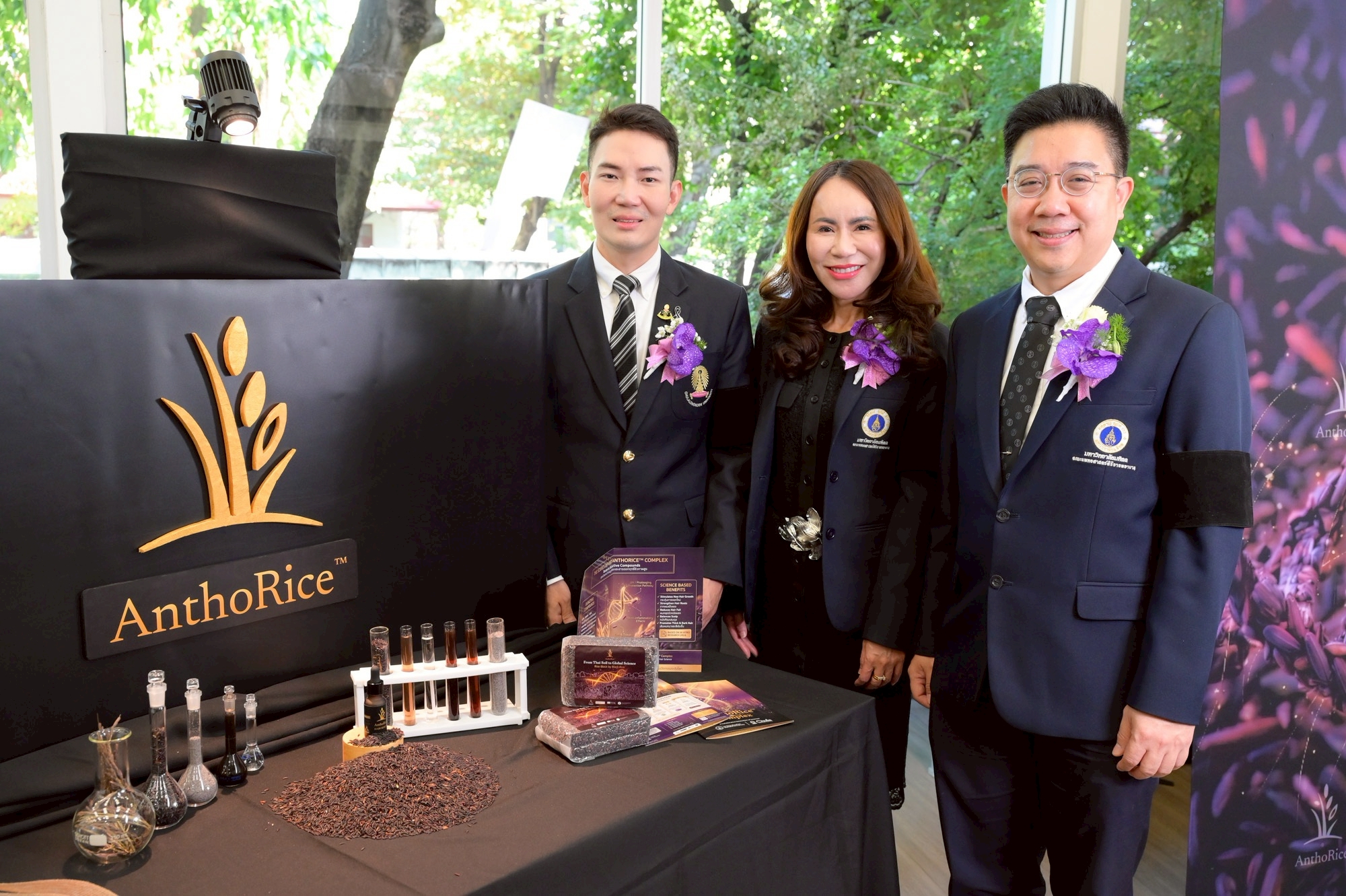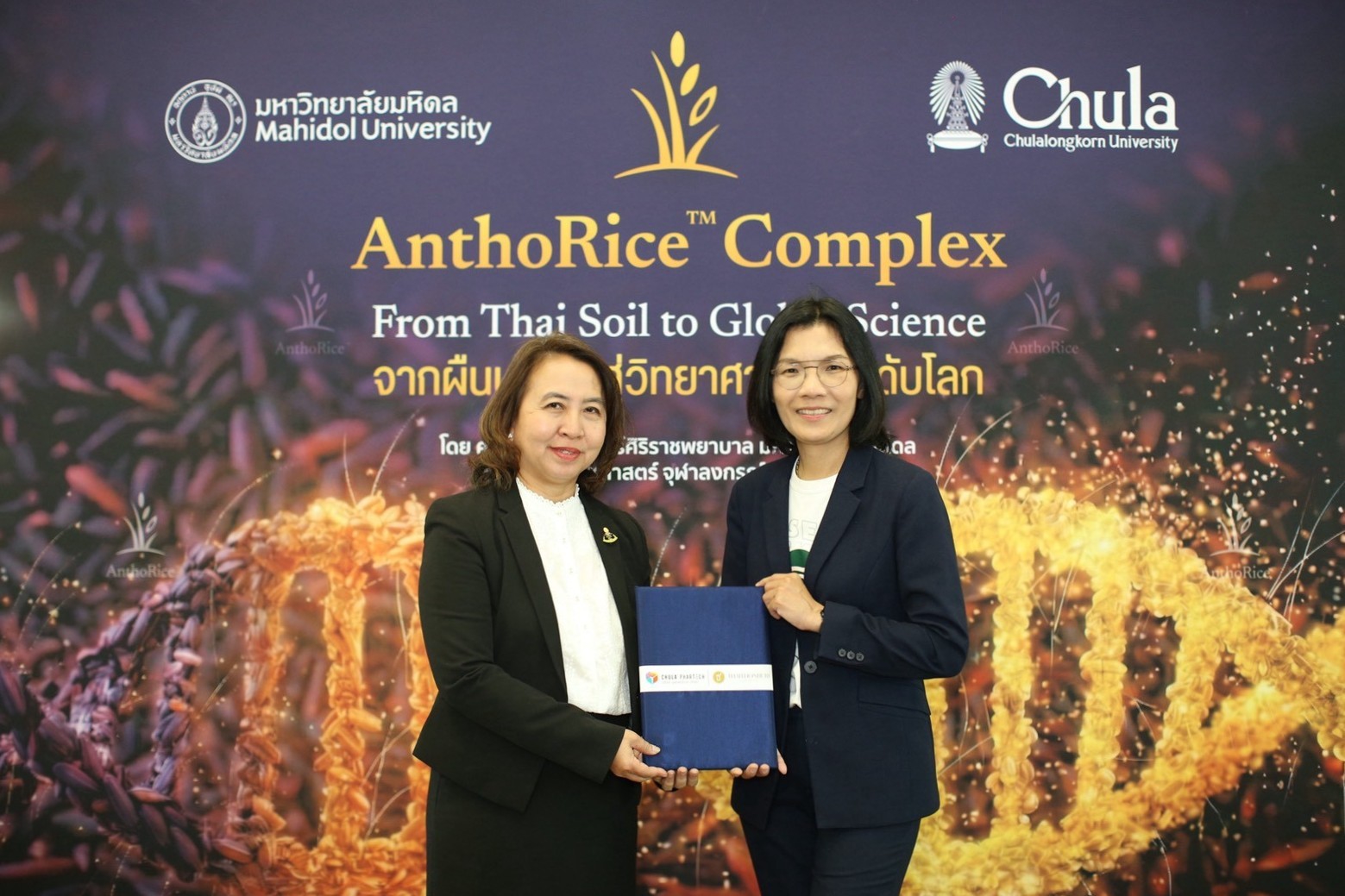 จุฬาลงกรณ์มหาวิทยาลัย ร่วมกับ มหาวิทยาลัยมหิดล จัดงานแถลงข่าวโครงการ “AnthoRice™ Complex – From Thai Soil to Global Science” นวัตกรรมเซรั่มบำรุงรากผมจากสารสกัดข้าวไรซ์เบอร์รี่อินทรีย์ของไทย ผสานเทคโนโลยี StemAktiv® ผลงานการวิจัยโดยอาจารย์คณะเภสัชศาสตร์ จุฬาฯ ซึ่งผ่านการวิจัยและตีพิมพ์ในวารสารวิชาการนานาชาติ เตรียมเข้าสู่การทดสอบทางคลินิกในอาสาสมัครที่โรงพยาบาลศิริราชในปีหน้า