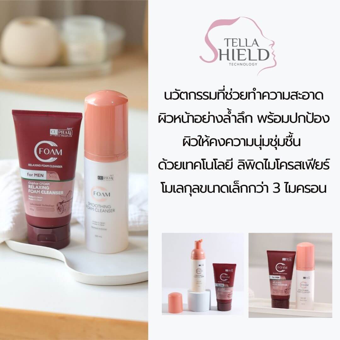 CFOAM for Men แค่ล้างหน้าก็เหมือนได้บำรุง โฟมคุมมัน ลดอักเสบบนผิวหน้า โฟมล้างหน้าที่ผ่านงานวิจัยนวัตกรรม TellaShield กว่า 5 ปี ที่ช่วยขจัดสิ่งสกปรกบนผิวหน้าอย่างหมดจด อ่อนละมุนแต่สามารถทำความสะอาดผิวหน้าได้อย่างล้ำลึก และหลังล้างหน้าผิวยังอ่อนนุ่มไม่แห้งตึง ผิวไม่เอี๊ยด เหมาะกับทุกสภาพผิว แม้ผิวแพ้ง่าย